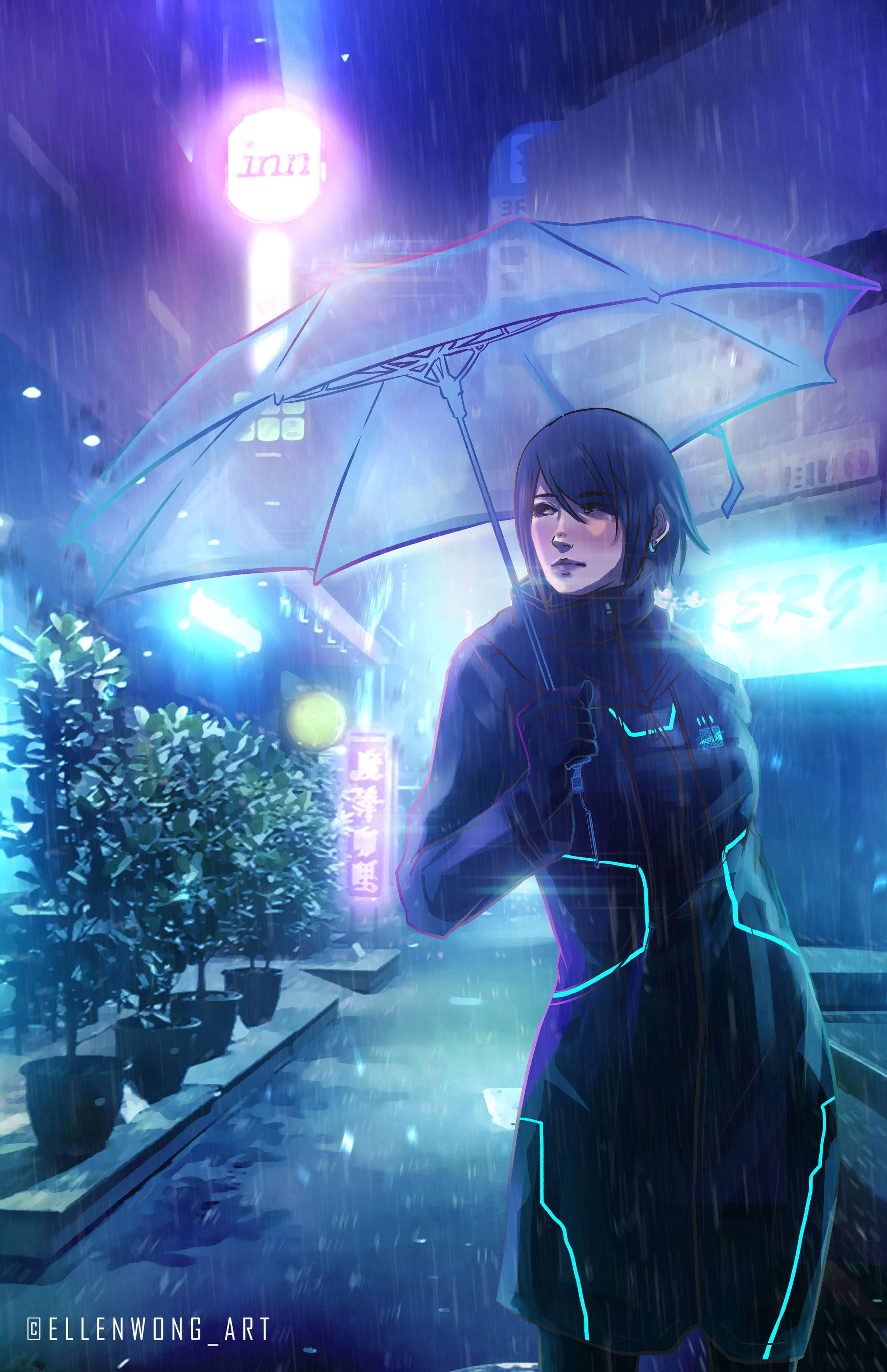 2000x1125 artwork fantasy art anime rain city park umbrella... Radforddouglas buy me a drink.